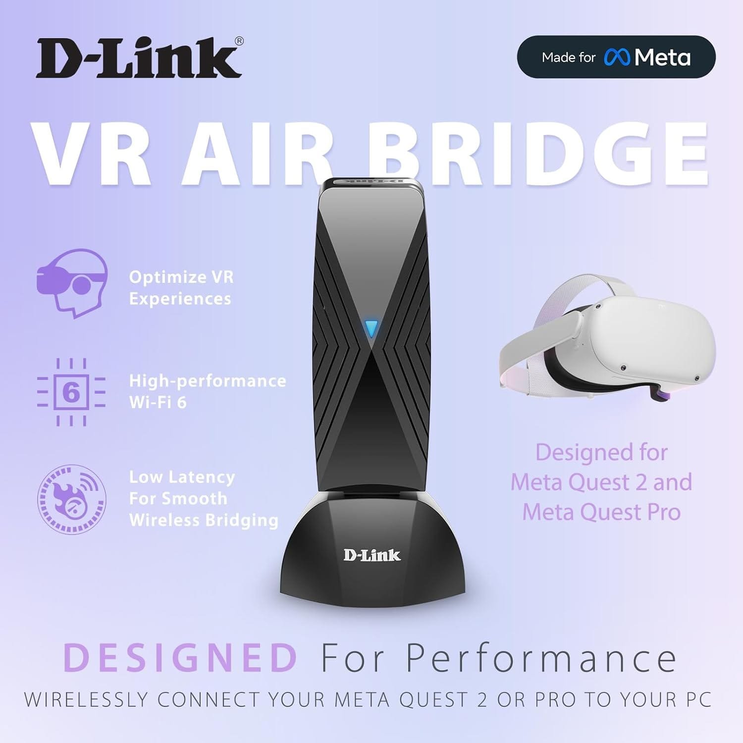 D-Link VR Air Bridge El adaptador inalámbrico Air Bridge es un accesorio Meta Quest construido por D-Link que permite a los
