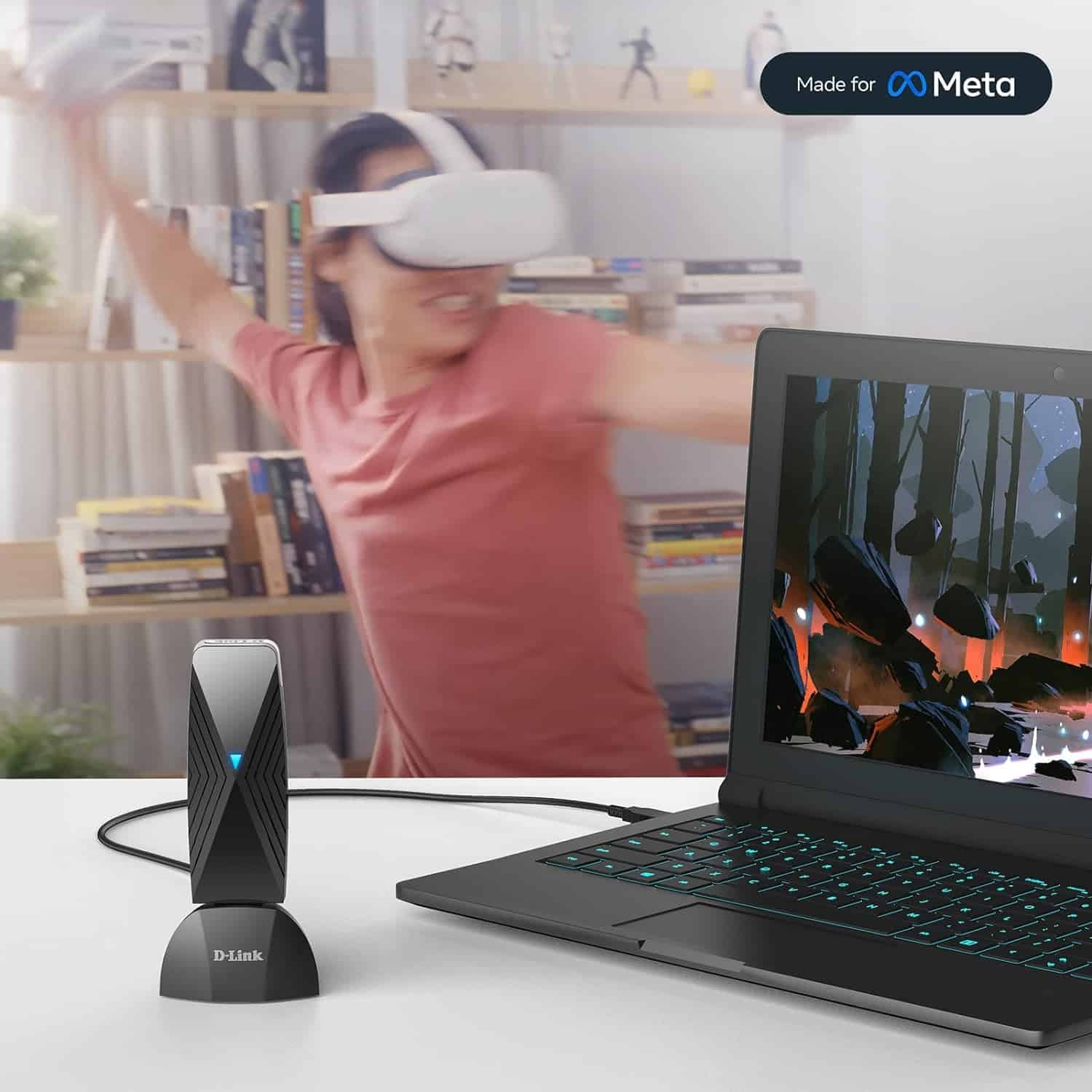D-Link VR Air Bridge para Meta Quest 2/3/Pro – Adaptador USB WiFi 6 para conexión inalámbrica dedicada entre tu Meta Quest 2 y PC de juegos – (DWA-F18)