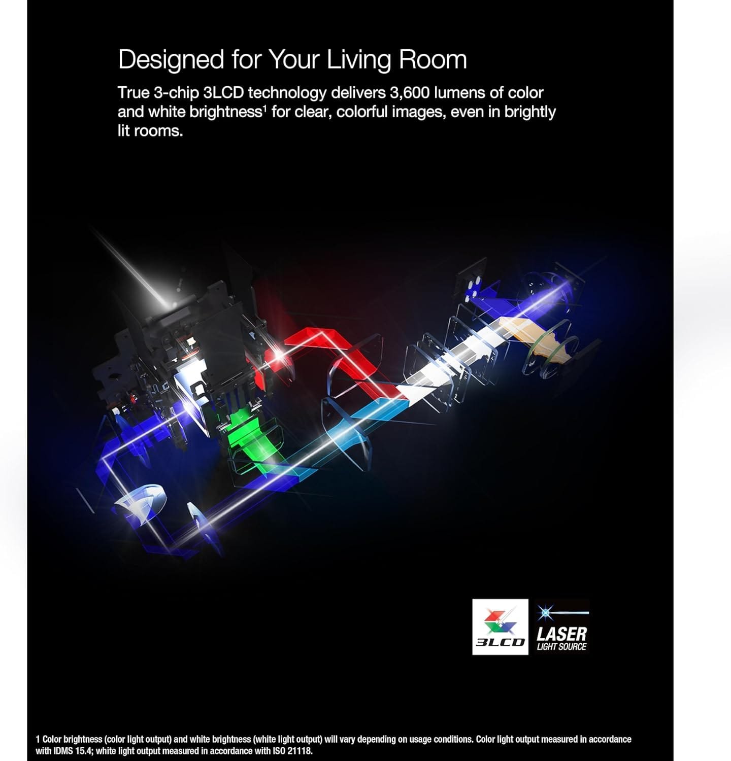 True 3-chip 3LCD technology delivers clear, colorful images, even in brightly lit rooms