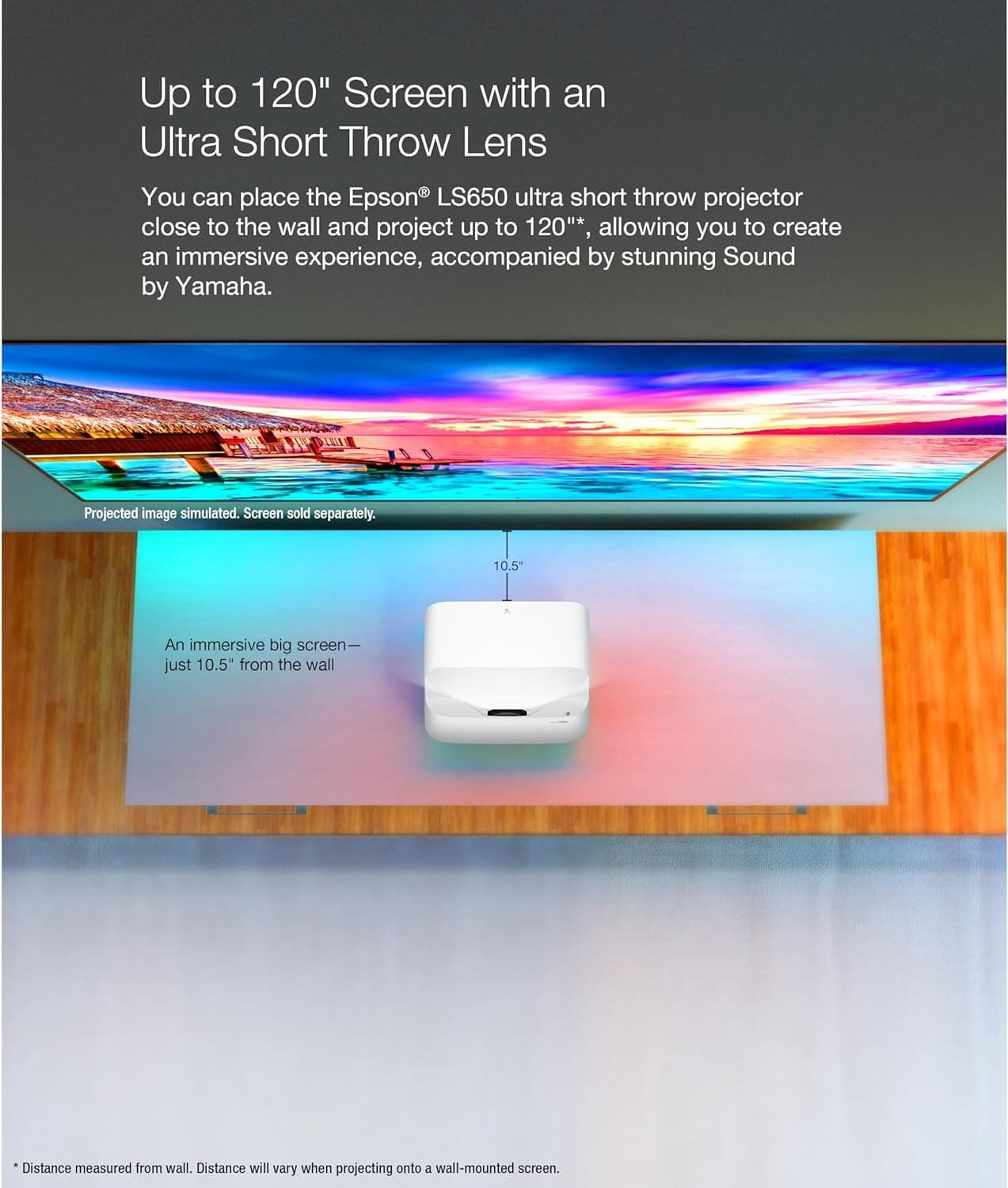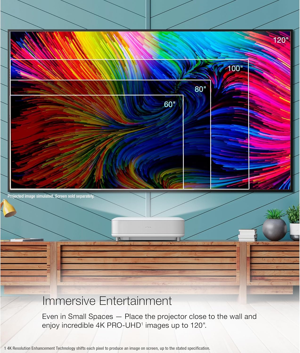Place the projector close to the wall and enjoy epic images up to 120″