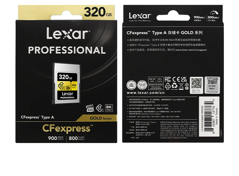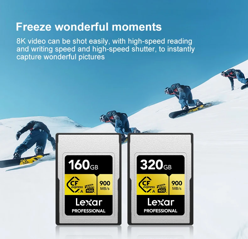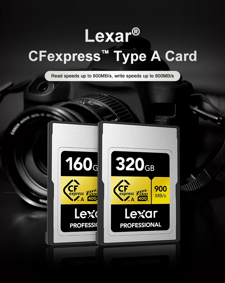 Lexar Professional CFexpress Tipo A Tarjeta GOLD Series 160GB 320GB Tarjeta de memoria Hasta 900 MB/s VPG400 8K Video CF Tarjeta para cámara