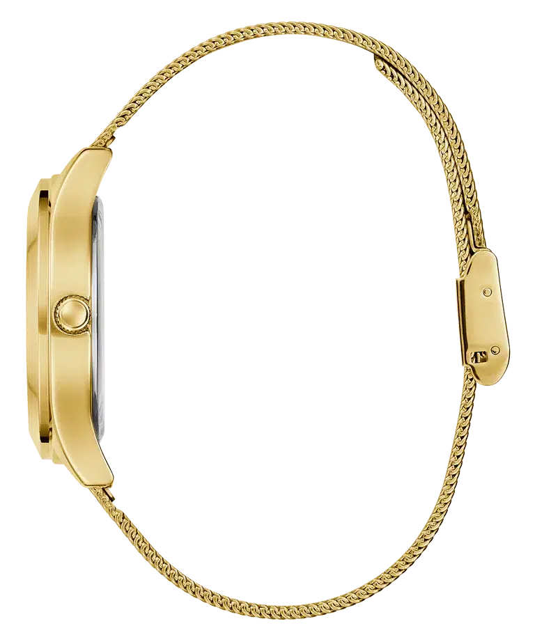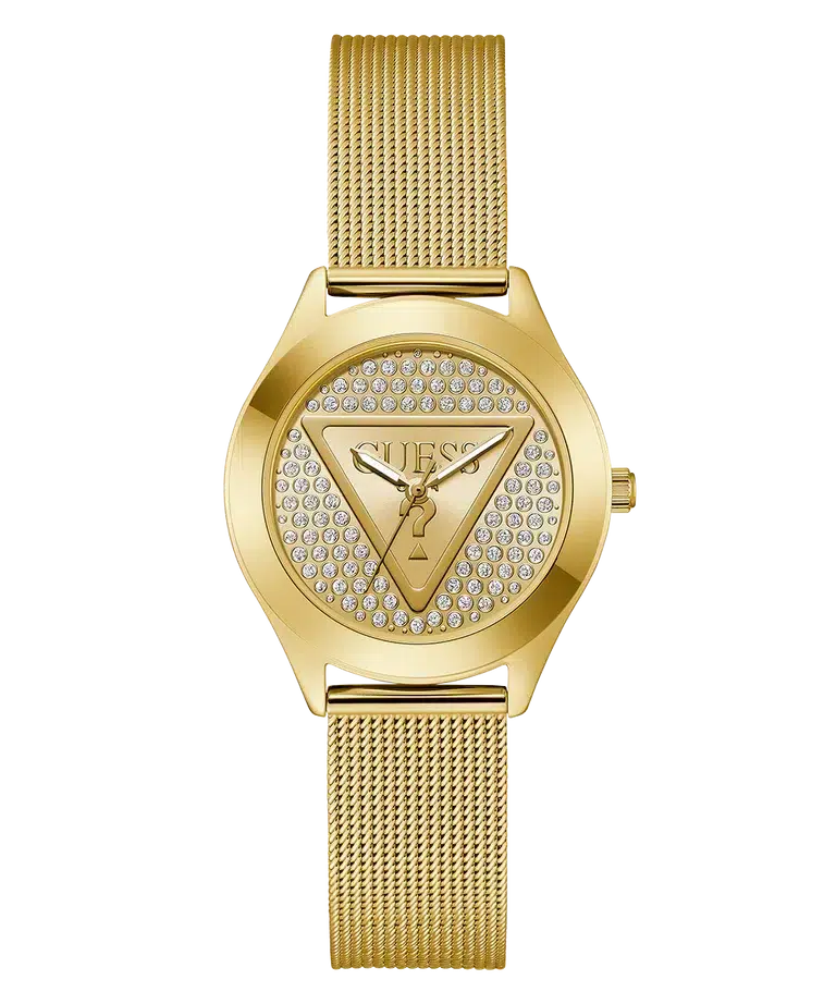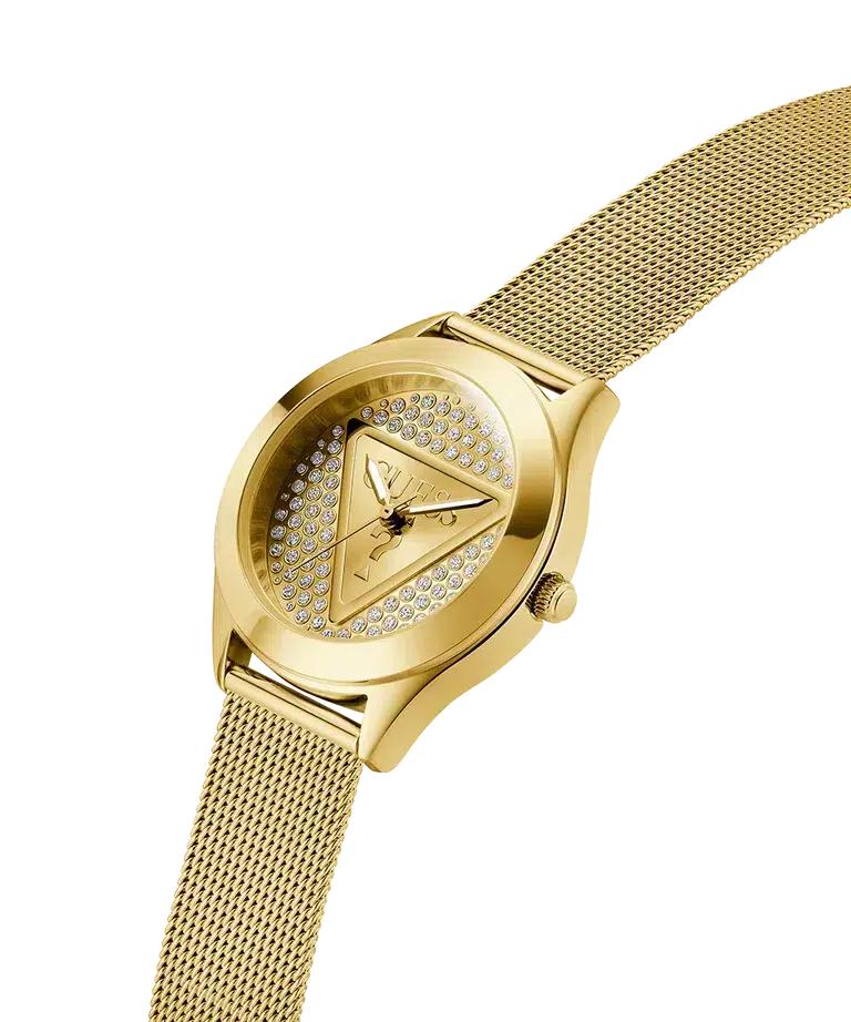 Este modelo, que sin duda será un elemento básico en su armario de relojes, presenta una caja pulida con una esfera brillante y una placa con el logotipo en forma de triángulo. Se combina con una elegante pulsera de malla autoajustable.
